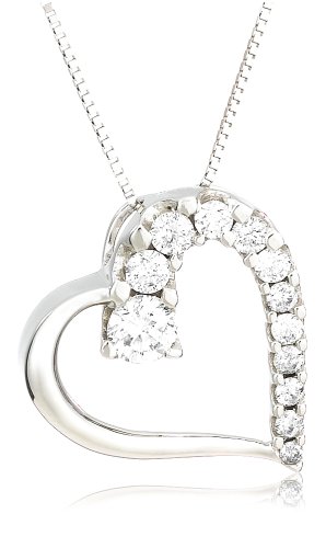 Buy 14k White Gold Diamond Journey Half-Heart Pendant (1/2 cttw, H-I Color, I1-I2 Clarity) Now
