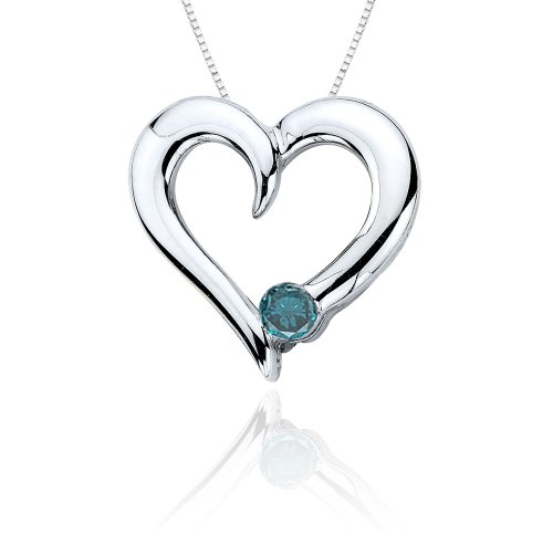 Buy 10k White Gold Blue Diamond Heart Pendant (1/10 cttw), 18" Now