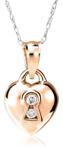 Buy 14k Rose Gold Diamond Heart Keyhole Pendant (.04 cttw, J Color, I2 Clarity), 18" Now