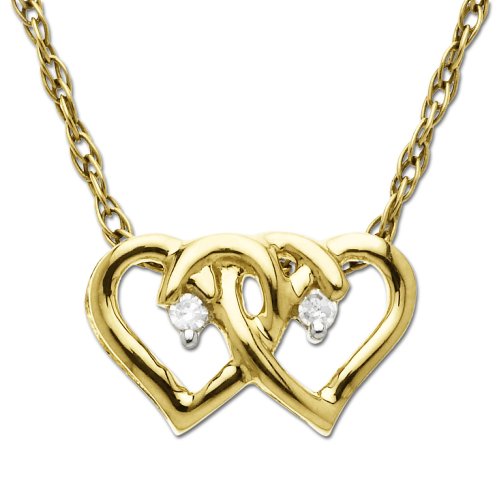 Buy 14k Yellow Gold Double Heart Pendant w/ Diamond Accent Now