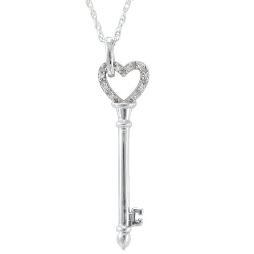Buy Sterling Silver 1/20 cttw Diamond Open Heart Key Pendant, 18" Now