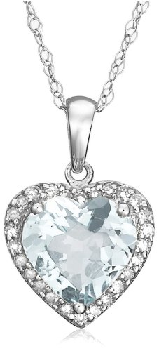 Buy 10k White Gold, March Birthstone, Aquamarine and Diamond Heart Pendant Now
