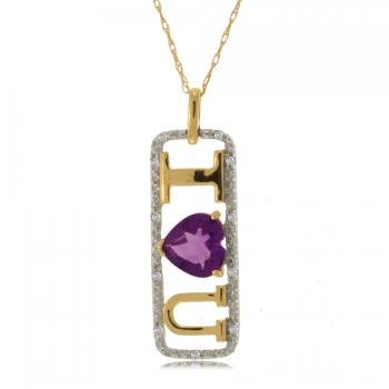 14k Yellow Gold I Love You Pendant w Amethyst Diamonds