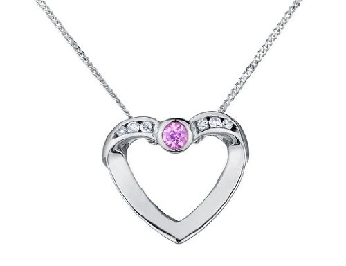 See more technical detailsBuy Pink Sapphire Heart Pendant with Diamonds in 10K White Gold with Chain Now