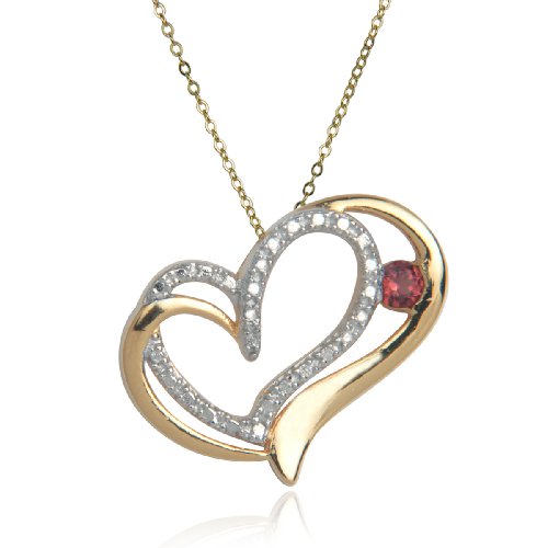 Buy Yellow Gold Overlay Sterling Silver & Diamond Intertwined Heart Pendant w/ 3mm Garnet Accent, 18" Now