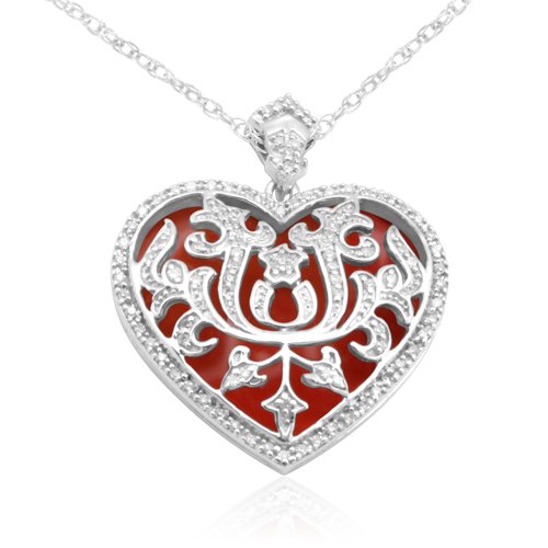 See more technical detailsBuy 10k White Gold Red Enamel Heart Diamond Pendant (1/4 cttw, I-J Color, I3 Clarity), 18" Now