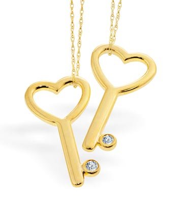 - Two perfectly matched pendants whimsically shaped like keys with heart shaped handles. Each has a flush set SOULMATE® diamond weighing from 0.03ct to 0.04ct, for a total weight of 0.06cttw to 0.08cttw.