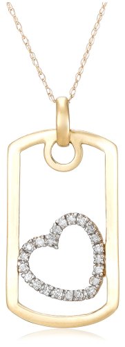 Buy 10k Yellow Gold Heart-Shaped Dog Tag Pendant (1/8 cttw, I-J Color, I2-I3 Clarity) Now