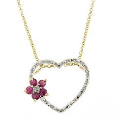 See more technical detailsBuy 18kt Over Sterling Silver Genuine Ruby and Diamond Accent Flower Heart Pendant Now