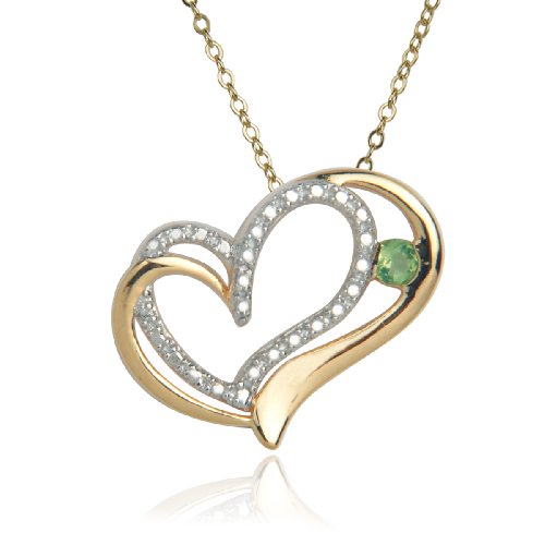 Buy Yellow Gold Overlay Sterling Silver and Diamond Intertwined Heart Pendant w/ 3mm Peridot Accent, 18" Now