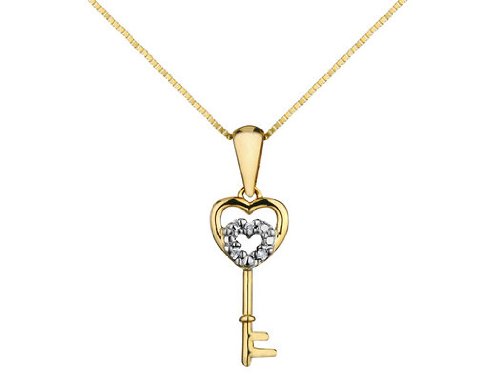 See more technical detailsBuy Heart and Key Diamond Pendant in 10K Yellow Gold with Chain Now