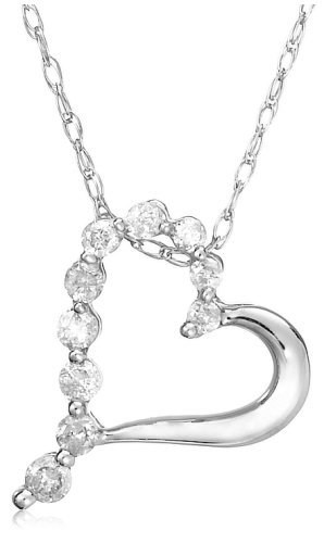 Buy 10k White Gold Diamond Journey Heart-Shaped Pendant (1/6 cttw, H-I Color, I3 Clarity) Now
