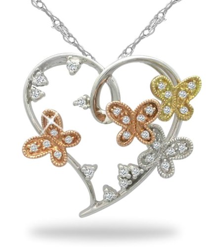 Buy 10k White, Yellow, and Rose Gold Diamond Dragonfly Heart Pendant (1/5 cttw, I-J Color, I2-I3 Clarity), 18" Now