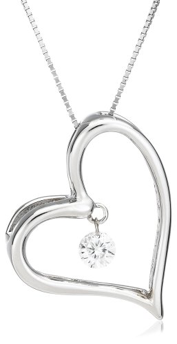 Buy 14k White Gold Floating Diamond Heart Pendant (1/6 cttw, I Color, I2 Clarity), 18" Now