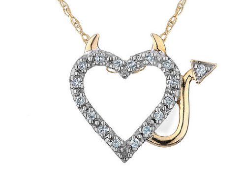 Buy Cheap Diamond Devil Heart Pendant in 14K Yellow Gold with Chain