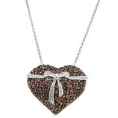 Buy Sterling Silver 2.00 Carat TW Garnet and Diamond Accent Heart Bow Pendant Now