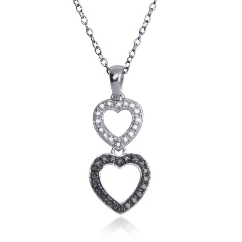 Buy Sterling Silver Diamond Double Heart Drop Pendant, 18" Now