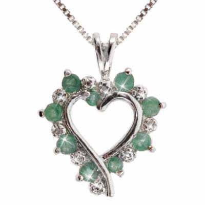 Genuine Emerald stones and Genuine Diamond Accents sparkle on a delicate Open Heart Pendant. With its rich color and surpassing beauty the Emerald stone had been treasured for centuries! From the land of the ancient pyramids it was prized by Cleopatra, Eg