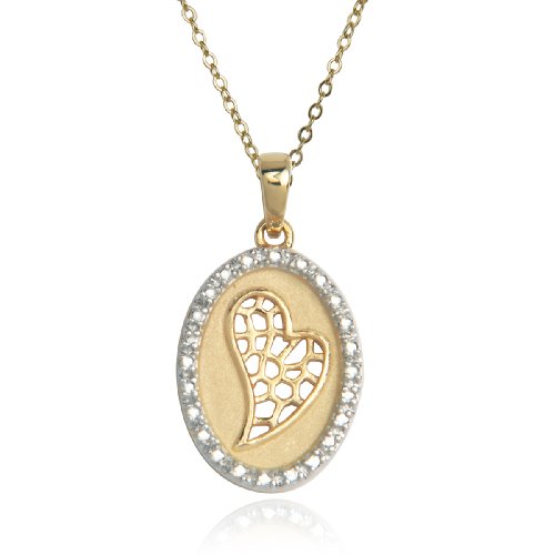 Buy Yellow Gold Plated Sterling Silver and Diamonds Heart Pendant, 18" Now