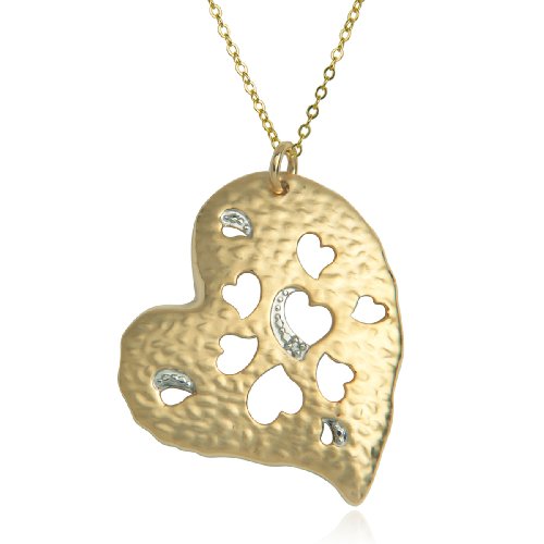 Buy Yellow Gold Plated Sterling Silver Hammered Heart and Diamond Pendant, 18" Now