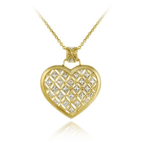 Buy 18K Gold over Sterling Silver Champagne Diamond Accent Quilted Heart Pendant Now